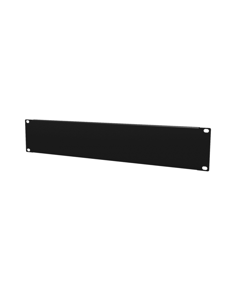 Élégante plaque borgne 2 U de 19, en acier d'une épaisseur de plaque de 1,5 mm et pourvue d'un revêtement en poudre structuré noir (RAL9004).
