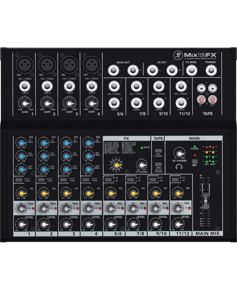 - Entrées ligne : 4 mono/stéréo 2 x jack symétriques, 4 x jack symétriques