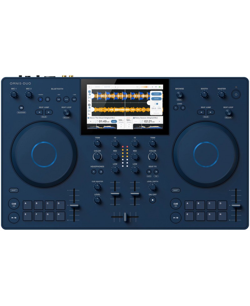 Grâce à ses dimensions compactes, son poids léger et ses coins arrondis, l'OMNIS-DUO est facile à emporter partout dans un sac à dos plus grand. La configuration à 2 platines et table de mixage du système semblera familière à tout le monde et se sentira bien lors du DJing. L'écran tactile dispose de deux modes – clair et sombre – entre lesquels vous pouvez basculer rapidement à tout moment, afin que vous puissiez facilement lire les informations affichées même dans des environnements lumineux.