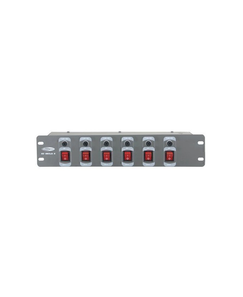 Switchboard à 6 canaux. Prises Schuko situées à l’arrière de 10 A par canal. Charge totale de 15 A. Fusibles sur le panneau avant.