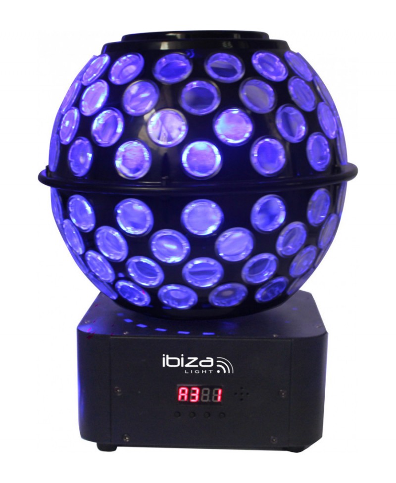Effet de lumière original contenant 4 LED RGBW sur le dessus qui projettent des gobos sur le sol ou le plafond ainsi que 8 LED CREE RGBW de très haute puissance qui projettent leurs rayons à travers les nombreuses lentilles.
