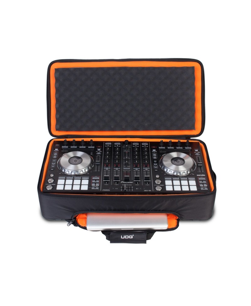 L’U9104 BL-OR BACKPACK LARGE BLACK est un sac à dos spécialement conçu pour transporter les contrôleurs midi comme les PIONEER DDJ 800 / 1000 / RR / SR / RX / SX2 / SX3 / XDJ-R1, FLX6, le DENON MC 7000, le RELOOP TOUCH / MIXON 4, NUMARK NV II / NV / MIXTRACK PRO 3 / N4 / NS6 II et les NI TRAKTOR KONTROL S8. On peut également transporter un ordinateur portable jusqu’à 18,4". De nombreux compartiments et poches le rendent très pratique au quotidien. Sur la face arrière 2 bretelles très ergonomiques et confortables. A noter qu’il existe une poignée sur le dessus et sur le côté, on peut ainsi le transporter de 3 manières différentes.