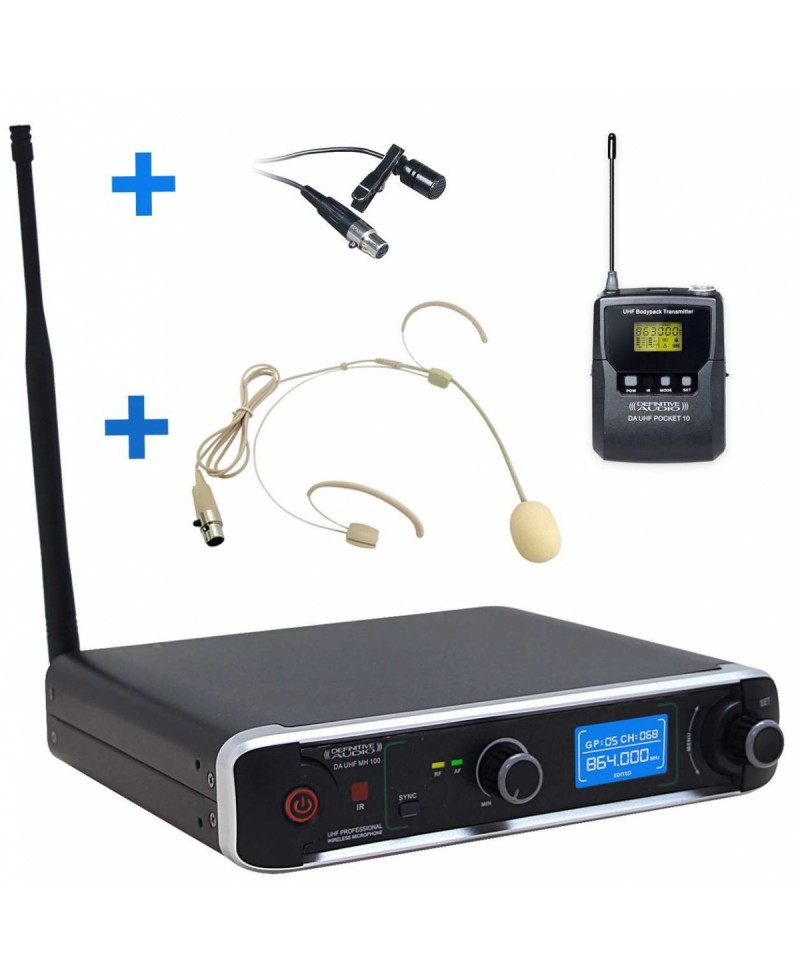 Micro Serre Tête Simple UHF Definitive Audio DA UHF PT 100 Definitive Audio introduit une nouvelle gamme de micros sans fil serre tête / cravate : les DA UHF PT. La gamme comprend 2 modèles, un canal et deux canaux. Ils sont conçus avec un châssis standard 1U, un écran LCD et des boutons de contrôle pour la gestion et les réglages nécessaires. Système sans fil de type PLL permettant un usage simple et efficace en toutes circonstances. La qualité de fabrication remarquable n'empêche pas un rapport/qualité prix peu commun. La gamme DA UHF MH vous apportera une qualité, des performances sonores, un son clair et précis.