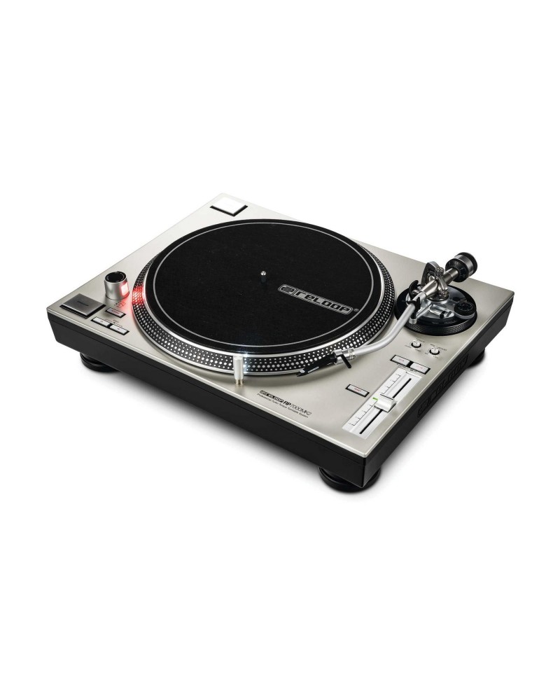 La nouvelle platine vinyle RP 7000 MK2 SILVER de Reloop est dotée d’un châssis résistant grâce à sa construction en métal et aux matériaux synthétiques. Son plateau anti-vibrations et résistant aux rayures est revêtu d’une jolie finition noire et métal. La puissance du moteur à quartz et le couple de démarrage réglable permettent de régler précisément la vitesse de rotation du plateau de 0,2 à 6 secondes, ce qui en fait une platine vinyle extrêmement fluide. Le bras de lecture en S dispose de l’anti-patinage ainsi qu’une connexion universelle pour les têtes de lecture classiques. La RP 7000 MK2 SILVER est également équipée du système de lecture avant/arrière et de deux boutons marche/arrêt pour faciliter l’utilisation en configuration verticale. Elle dispose également de boutons permettant d’alterner les trois modes de vitesses (33 1/3, 45 et 78 tr/min). Un éclairage à Led mobile et interchangeable permet de trouver facilement la position de la tête de lecture dans un environnement sombre. La RP 7000 MK2 SILVER dispose d’un préampli phono intégré et commutable permettant de l’utiliser avec un signal de sortie Phono ou ligne. La connexion RCA est facilitée par l’usage de câbles détachables. Grâce aux améliorations techniques apportées, cette nouvelle RP 7000 MK2 SILVER répond de manière encore plus significative aux exigences élevées des Clubs et des DJ professionnels.